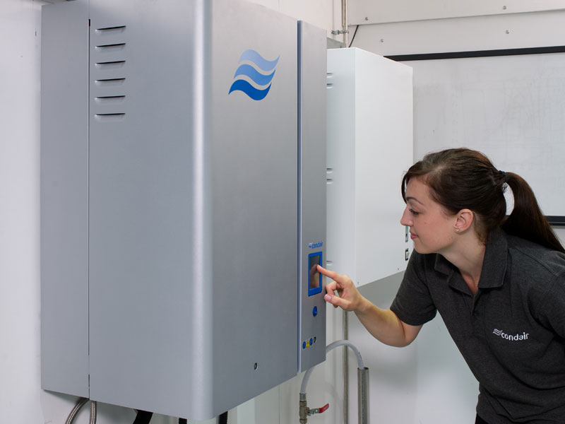 The Condair EL incorporates the latest touch screen technology for intuitive operational control and advanced reporting. All settings and system data can be seen at a glance with detailed troubleshooting suggestions provided. The system has BMS connectivity included as standard with Modbus and BACnet protocols and LonWorks as an option. A USB connection allows operating and maintenance data to be recorded and downloaded for convenient analysis in Excel. An optional “Condair Online” feature also allows the system to be internet-connected for remote diagnostics and troubleshooting directly by Condair, thus potentially eliminating the need for an engineer to visit site to resolve issues.