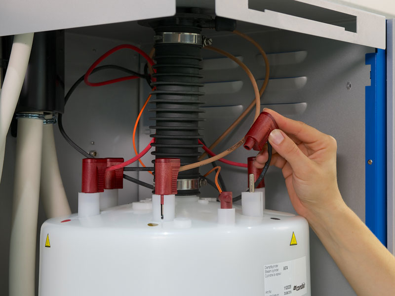 To combat scale and extend the operational lifetime of the cylinder, the humidifier intelligently monitors the mineral levels in the system, keeping them at an optimum level. When the level becomes too great, a drain and refill cycle take place, with just the precise amount of fresh water needed to maintain the optimal mineral level. This is in contrast to other electrode boilers that use a timer controlled drain, irrespective of the system’s actual water quality.